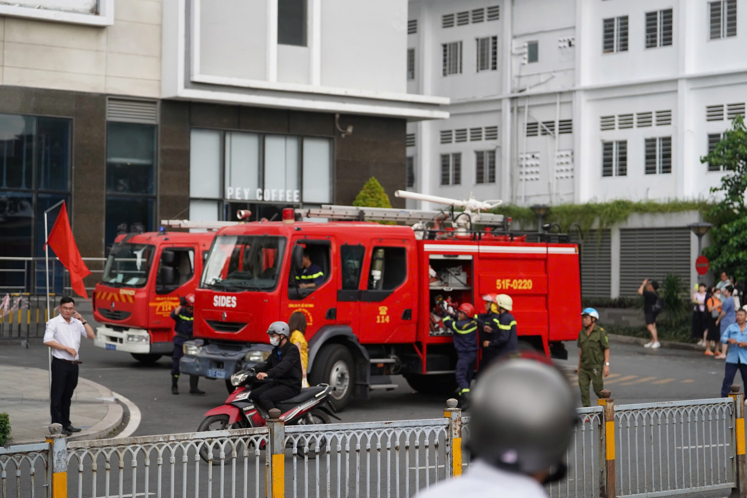 Hiện lực lượng Cảnh sát PCCC và CNCH (Công an TPHCM) đã huy động nhiều cán bộ, chiến sĩ và phương tiện đến hiện trường chữa cháy.