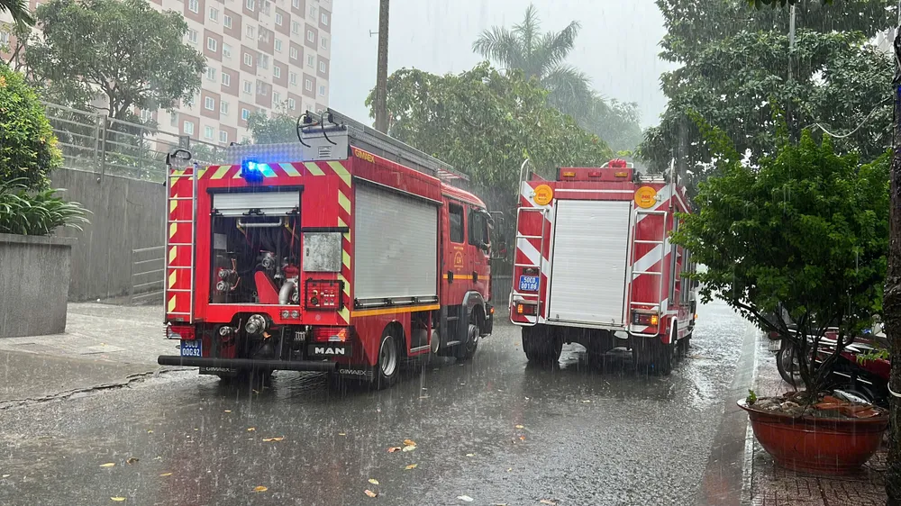Lực lượng bảo vệ chung cư lập tức báo cơ quan chức năng. Chuông báo cháy vang lên, nhiều cư dân ôm theo tài sản, chạy tán loạn xuống đất bằng thang bộ. Thời điểm xảy ra cháy, trời đang có mưa lớn.