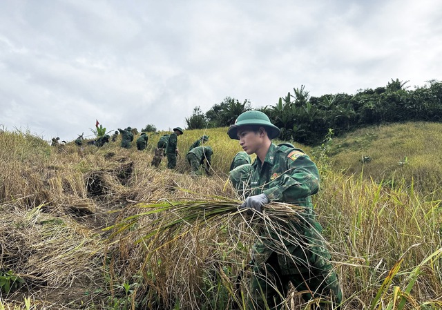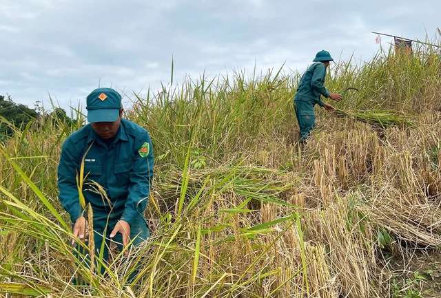 Ứng phó với mưa bão, lực lượng vũ trang Đà Nẵng khẩn trương ra quân thu hoạch nông sản, giúp bà con giảm thiểu thiệt hại trước bão. Tại xã Hùng Sơn, Ban Chỉ huy quân sự xã huy động hàng chục dân quân thường trực và lực lượng xung kích xuống đồng giúp bà con thu hoạch lúa.