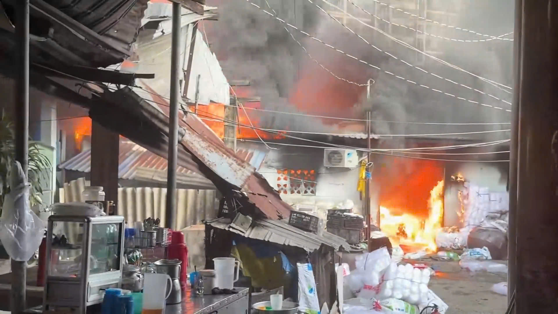 Hai căn nhà bị cháy. Ảnh cắt từ clip