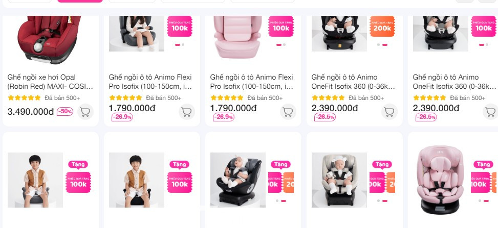 Trong khi đó, các sàn thương mại điện tử cũng rao bán nhiều mặt hàng ghế ô tô trẻ em với giá cực mềm, kèm nhiều chương trình khuyến mãi như ghế cho bé 6 tuổi giảm 35% còn hơn 200.000 đồng, ghế 0-6 tuổi giảm 50% còn 369.000 đồng… Không ít sản phẩm chỉ ghi chung chung “ghế an toàn trẻ em” tem nhãn sơ sài khiến người tiêu dùng càng thêm rối nếu không tìm hiểu trước khi mua online.