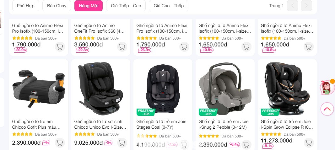 Ghế ô tô trẻ em tầm giá từ 2 - 5 triệu đồng được người tiêu dùng ưa chuộng