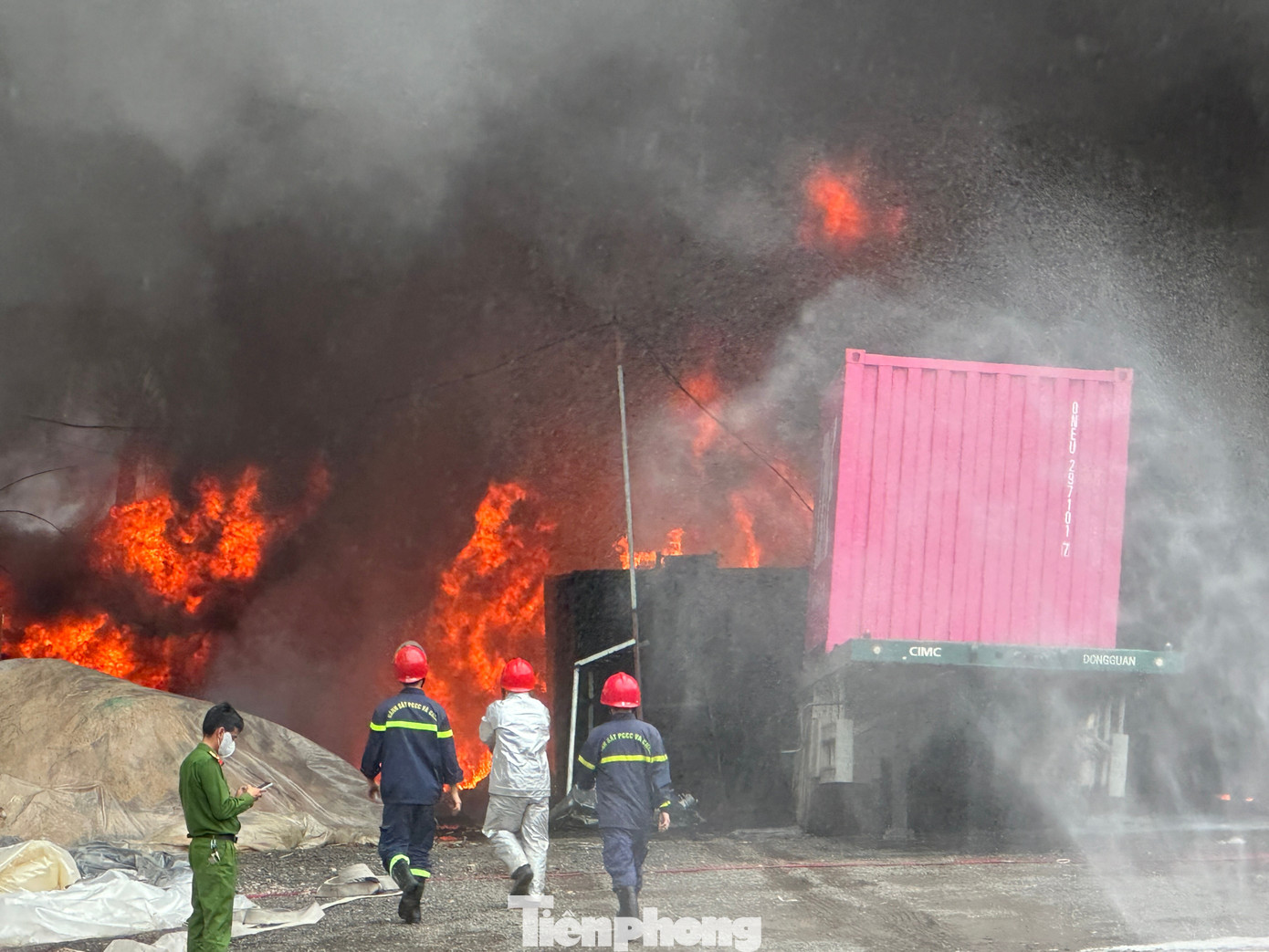 Đến 15h40 chiều cùng ngày, công tác chữa cháy vẫn đang được tiếp tục. Lực lượng PCCC đang phun bọt, khống chế hướng cháy, đồng thời phong tỏa khu vực để ngăn cháy lan sang khu dân cư xung quanh.