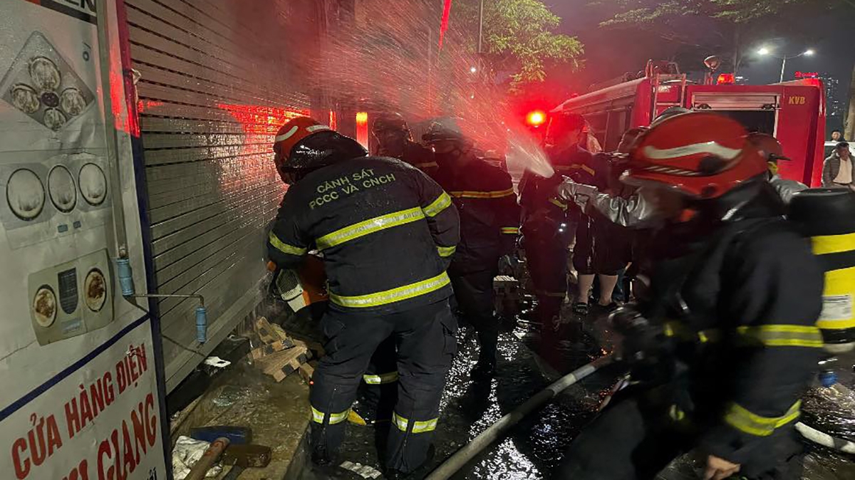 Song song đó, một mũi chữa cháy được triển khai phá cửa cuốn tầng 1 nhằm khống chế ngọn lửa, ngăn cháy lan sang các tầng và căn hộ liền kề. Đến khoảng 20h48 phút, đám cháy được dập tắt hoàn toàn.