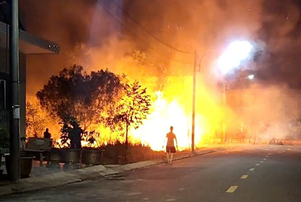 Cháy đám cỏ ở gần khu dân cư Hùng Vương khiến nhiều người hoảng sợ.