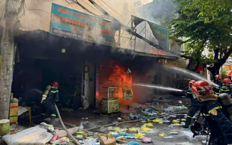 Vòi rồng được chuyển theo nhiều hướng để cô lập đám cháy, không cho lan sang các hộ kinh doanh lân cận. Công an phường đã điều động các tổ công tác xuống giữ hiện trường và hàng hóa cho người dân. Sau hơn 30 phút, đám cháy được khống chế, căn nhà cấp 4 kinh doanh bao bì, đồ nhựa bị cháy rụi, đổ sập phía sau.