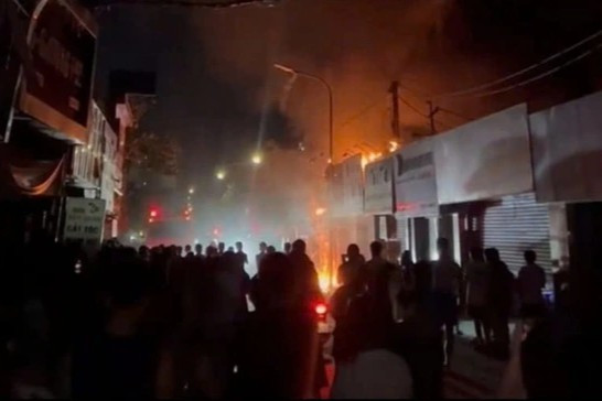 Ngọn lửa lớn bao trùm cửa hàng quần áo trên đường Lý Tự Trọng, phường Vinh Phú, Nghệ An