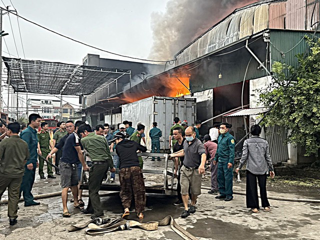 Theo các nhân chứng, đám cháy lớn bùng phát dữ dội, tiềm ẩn nguy cơ lan rộng do bên trong kho chứa nhiều vật liệu dễ cháy.