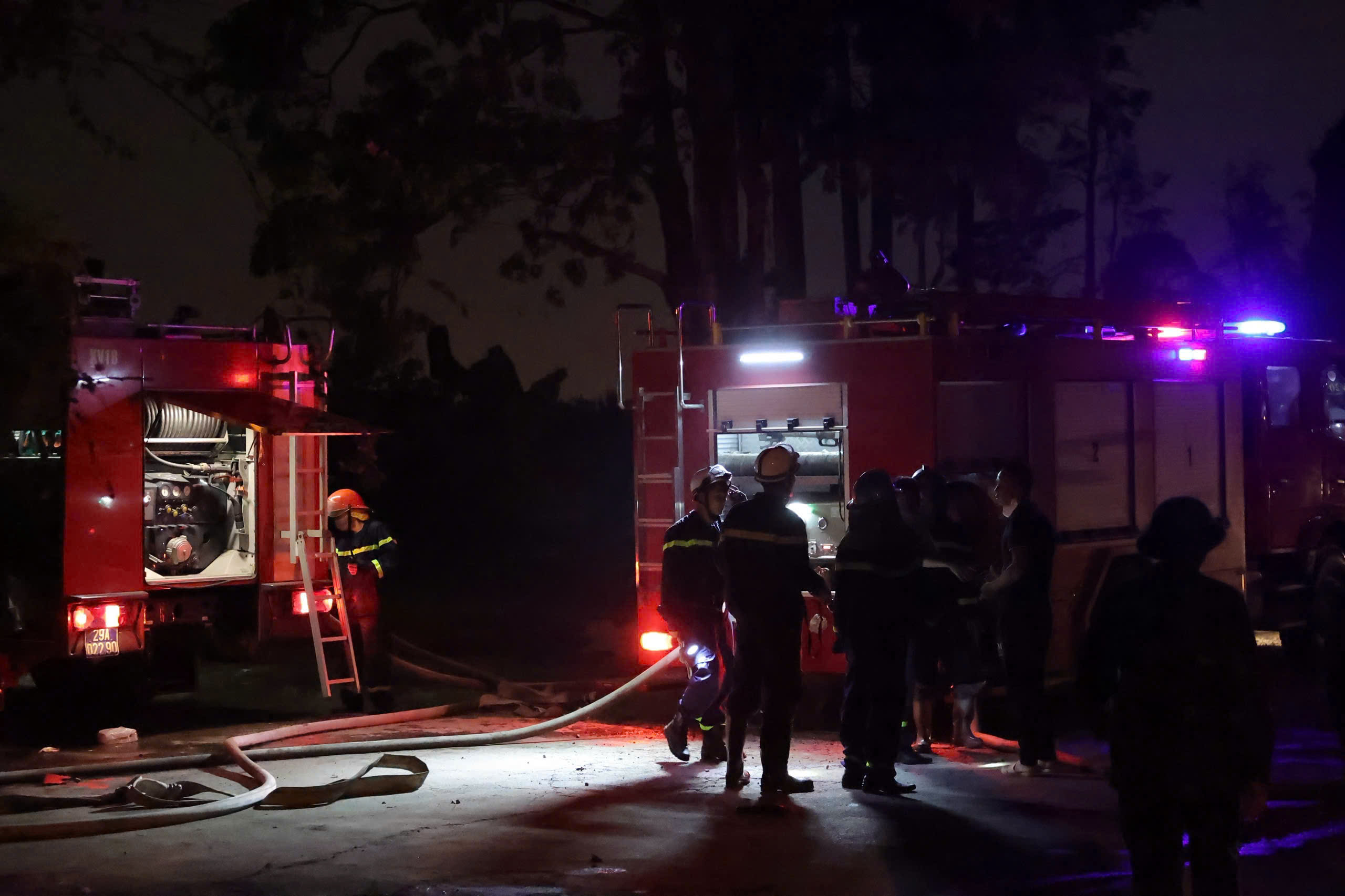 Hiện trường vụ cháy tới 21 giờ 30 phút. Ảnh: CƯỜNG TIẾN