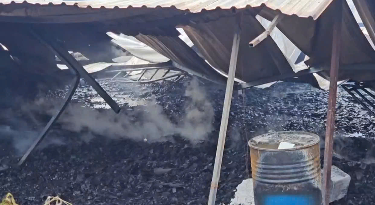 Nhà xưởng tan hoang sau vụ cháy. Ảnh: HC