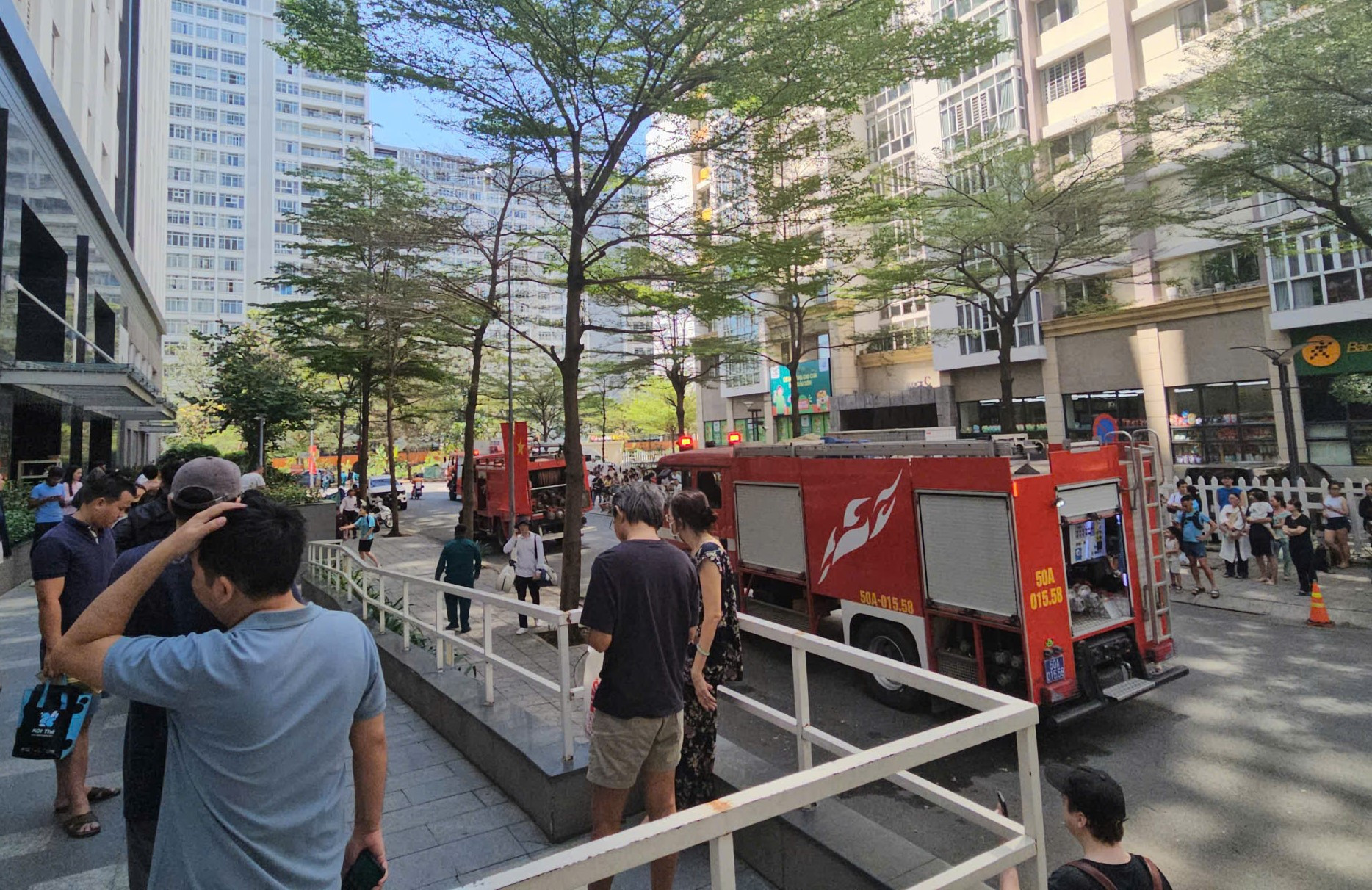 Chỉ trong ít phút, ngọn lửa đỏ rực kèm khói đen bao trùm căn phòng, tràn qua cửa sổ và bốc cao. Hệ thống chuông báo cháy của tòa nhà vang lên dồn dập. Ban quản lý nhanh chóng phát loa yêu cầu cư dân sơ tán khẩn cấp. Do thang máy bị ngắt để đảm bảo an toàn, hàng trăm người, trong đó có cả trẻ nhỏ, phải vội vã chạy bộ xuống mặt đất để thoát thân.