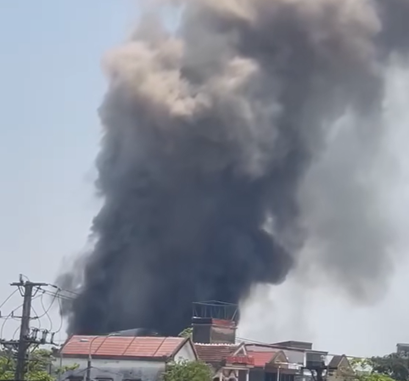 Do vật liệu là gỗ nên ngọn lửa lan nhanh, cột khói bốc cao.