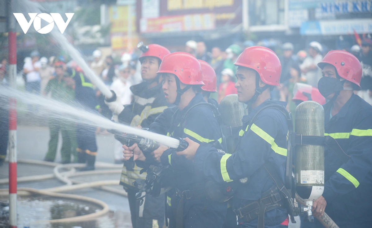 Cảnh sát Phòng cháy chữa cháy phun nước khống chế ngọn lửa