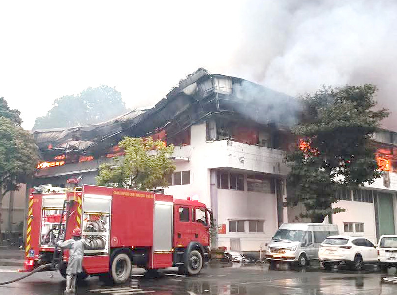 Vụ hỏa hoạn xảy ra tại Nhà máy Bia Hà Nội Habeco nằm trên đường Hoàng Hoa Thám.