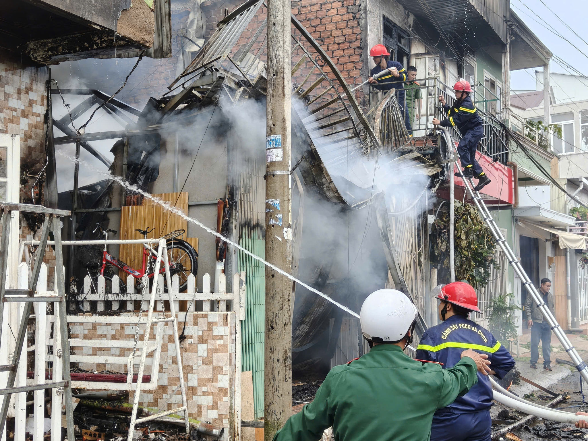 Nhận được tin báo, lực lượng Cảnh sát phòng cháy, chữa cháy và cứu nạn, cứu hộ (PCCC và CNCH), Công an tỉnh Lâm Đồng đã điều động nhiều xe chữa cháy cùng hàng chục cán bộ, chiến sĩ đến hiện trường để triển khai công tác dập lửa. Đám cháy bốc cao và lan sang 2 căn nhà liền kề, khiến khu vực trở nên hỗn loạn trong một thời gian ngắn.