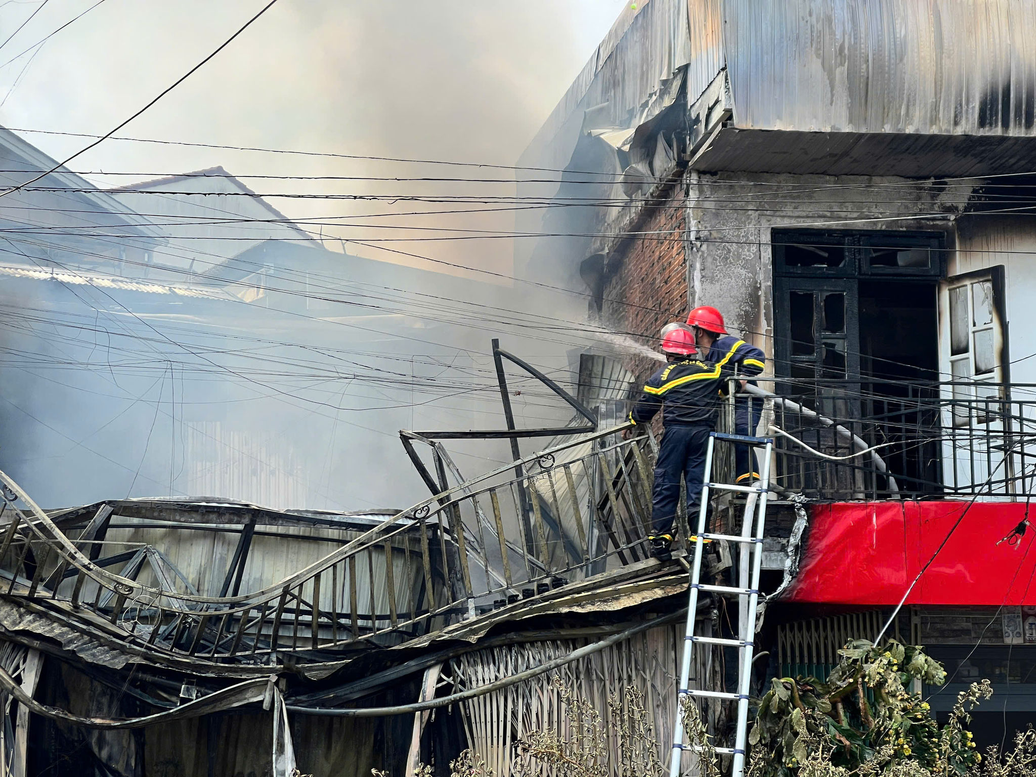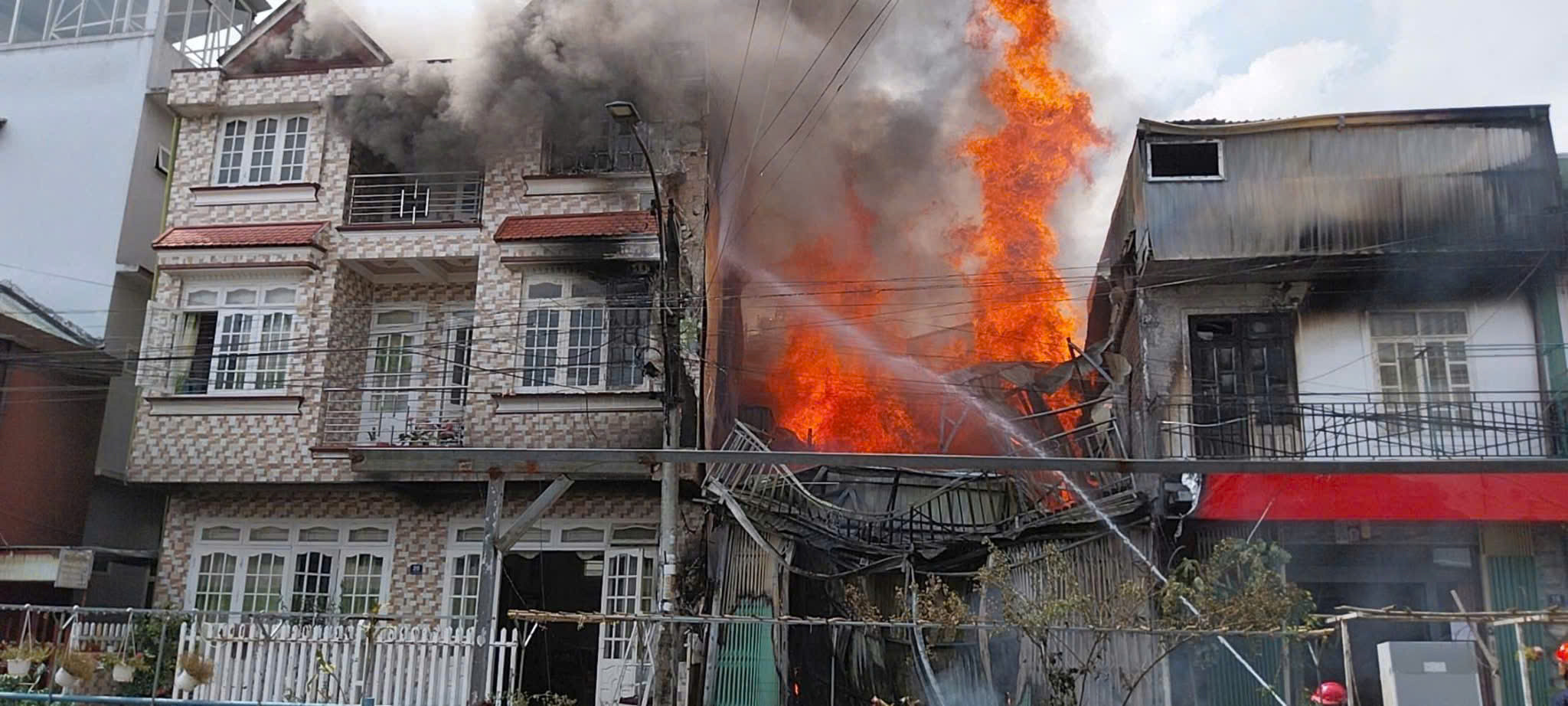 Lửa bùng phát và cháy lan sang 2 nhà bên cạnh trên đường Tô Ngọc Vân, phường Cam Ly - Đà Lạt sáng 19/4