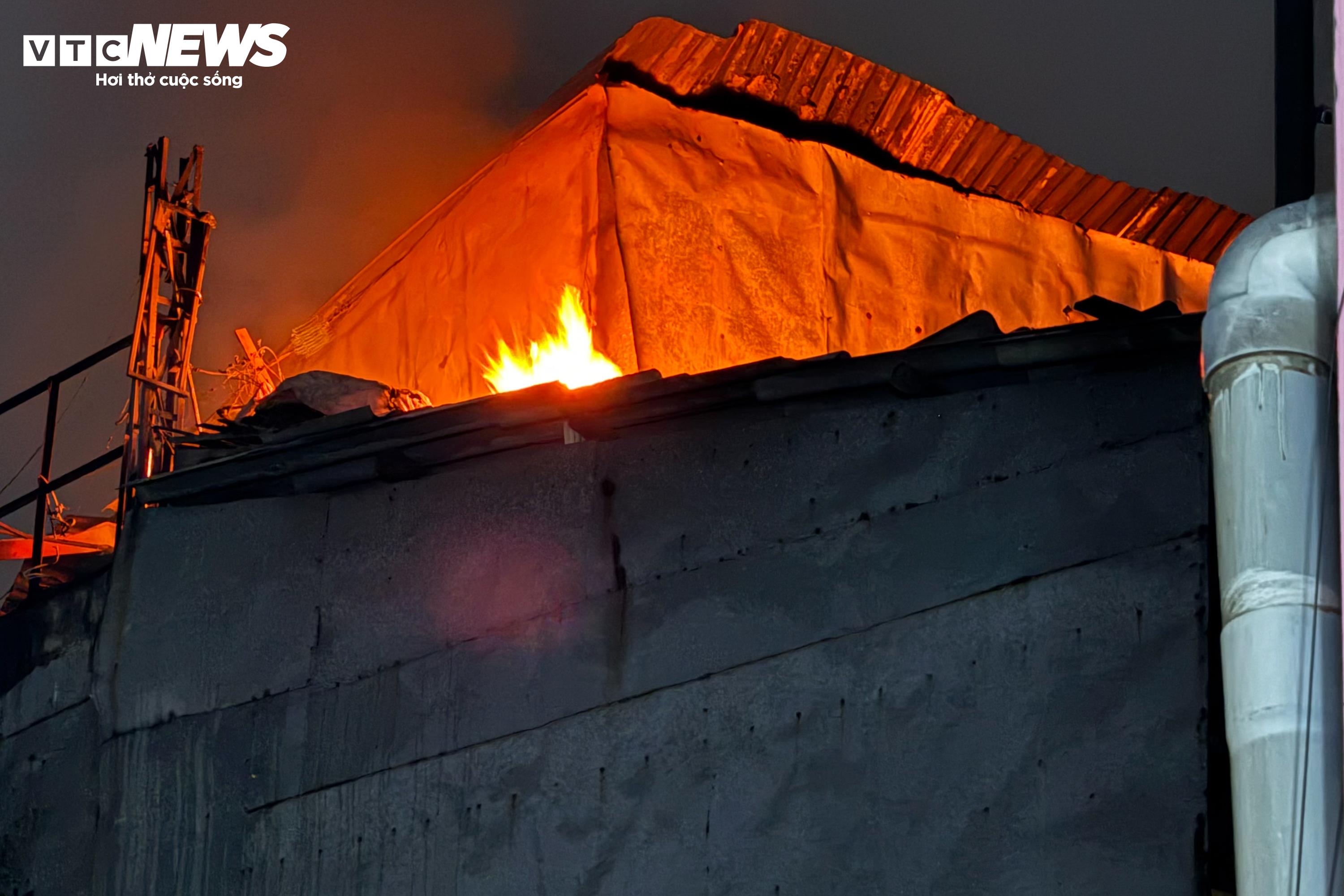 Lửa bùng phát dữ dội ở tầng trên cùng của ngôi nhà 4 tầng, tạo thành cột khói lớn.