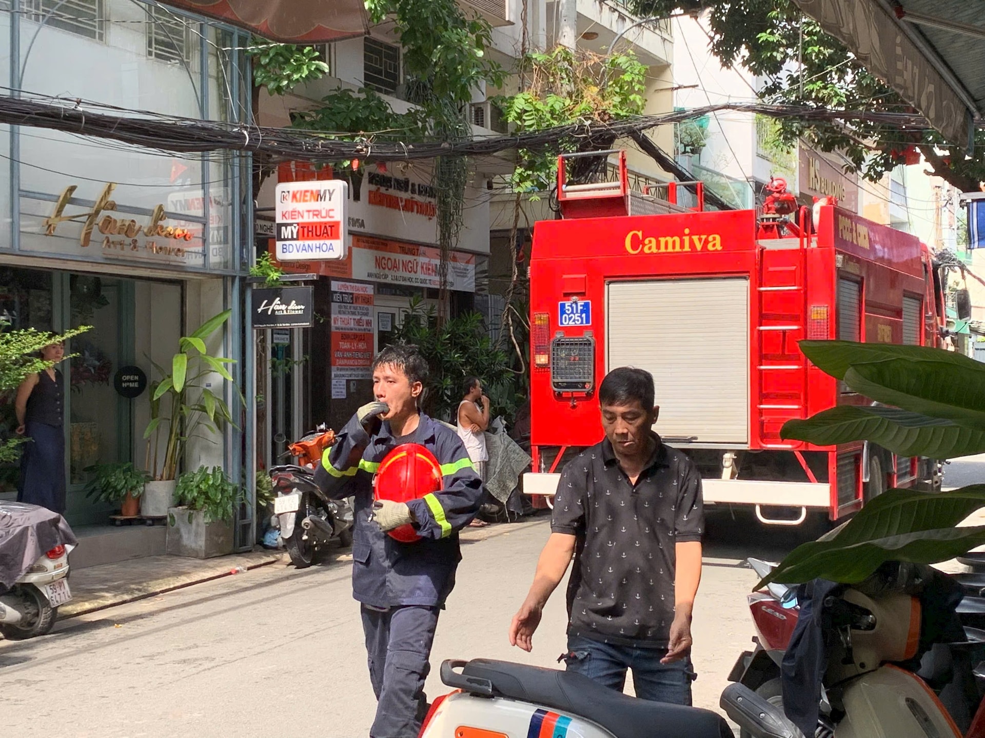 Thấy cháy, những người sống trong nhà cháy tán loạn và hô hoán người dân xung quanh đến dập lửa. Sau đó, mọi người cùng dùng bình chữa cháy mini và báo lực lượng chữa cháy.