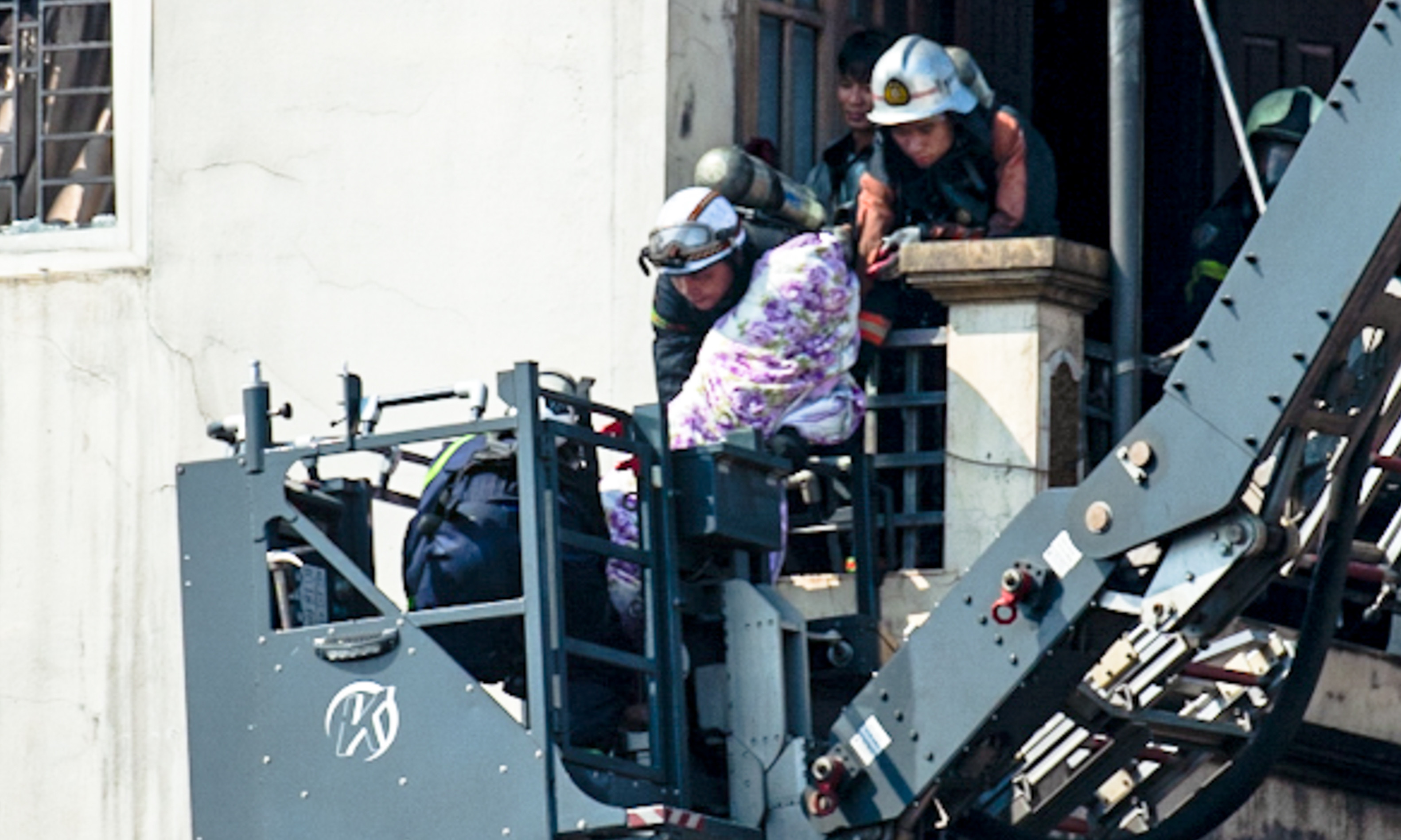 Cảnh sát đưa nạn nhân mắc kẹt ra khỏi hiện trường.