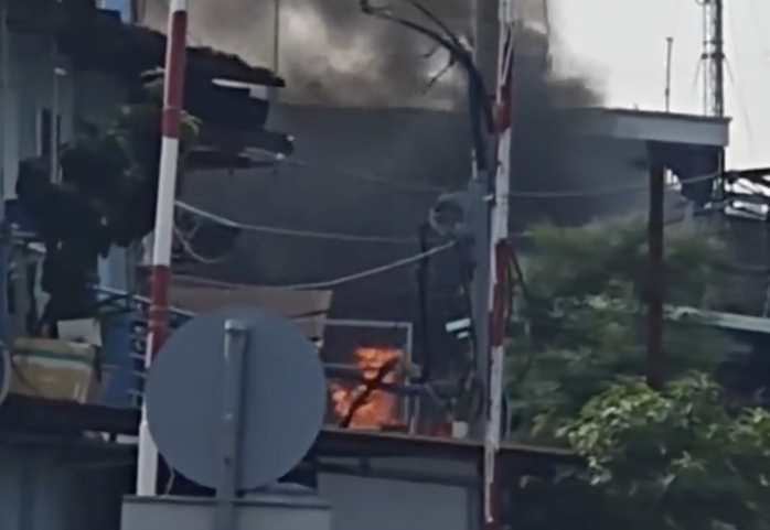 Lửa sau đó bùng lên dữ dội, cột khói bốc lên cao hàng chục mét.
