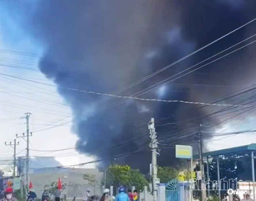 Vụ cháy kéo theo cột khói đen bốc cao hàng chục mét.