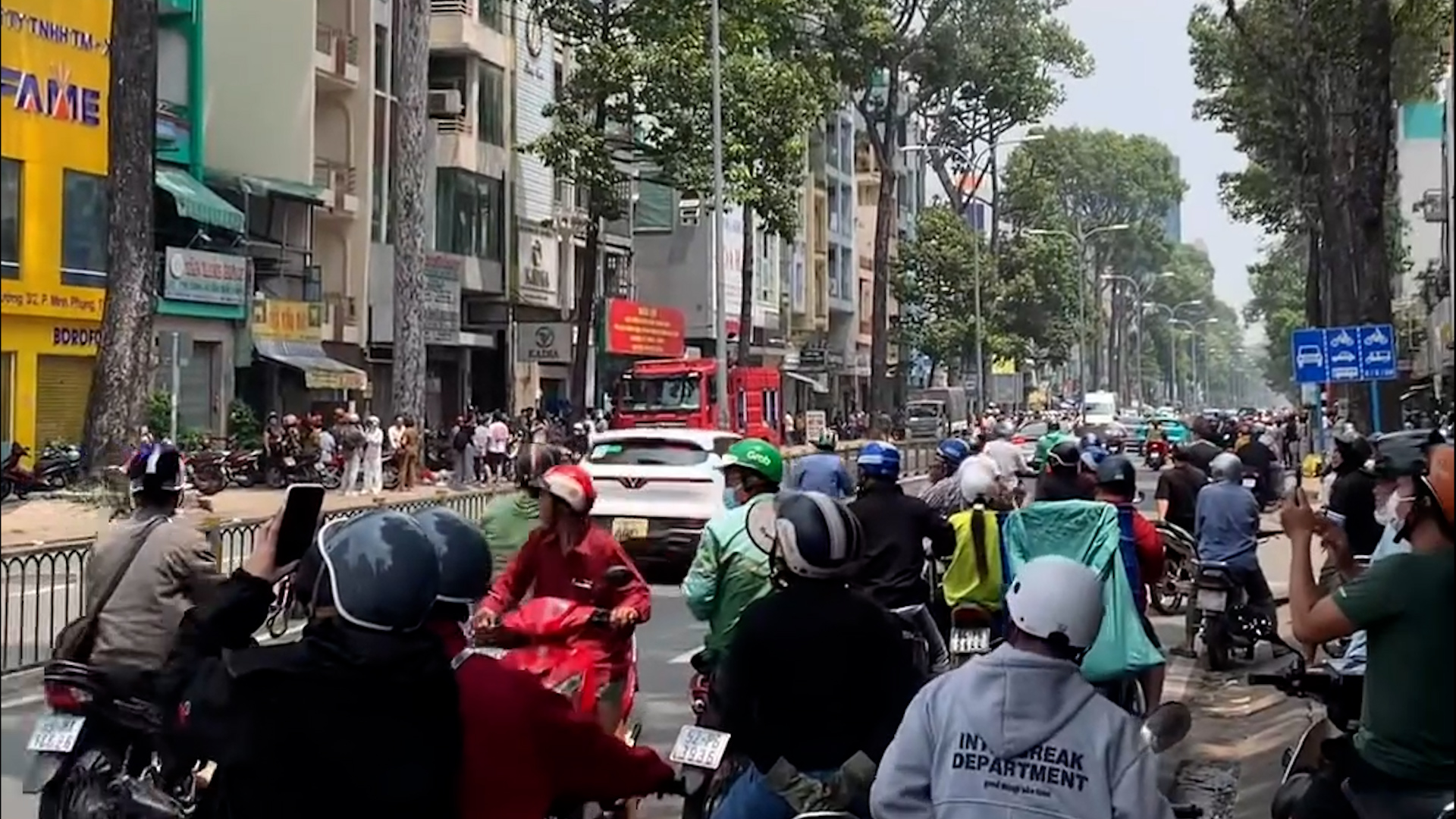 Người dân hiếu kỳ tập trung theo dõi trên đường 3-2. Ảnh: H. TÂM