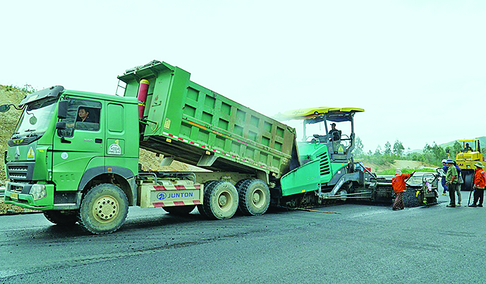 Thời tiết thuận lợi, nhà thầu tranh thủ thảm nhựa mặt thi công cao tốc Quy Nhơn - Chí Thạnh.