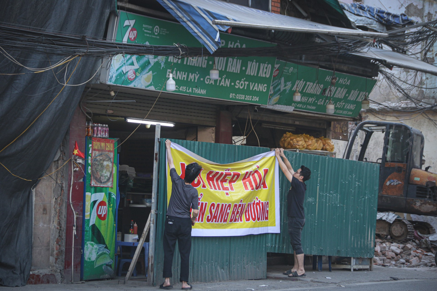 Nhiều cửa hàng lắp biển di dời để phục vụ cho công tác GPMB.