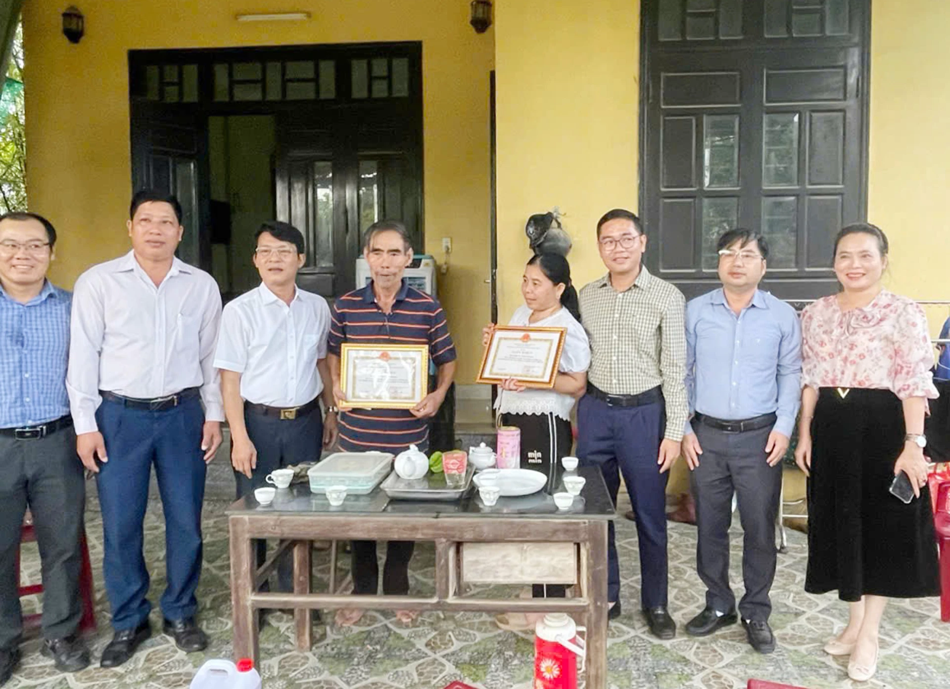 UBND phường Đồng Thuận và Ban Quản lý Dự án BIIG2 khen thưởng cho các hộ gia đình tự nguyện bàn giao mặt bằng - Ảnh: B.T
