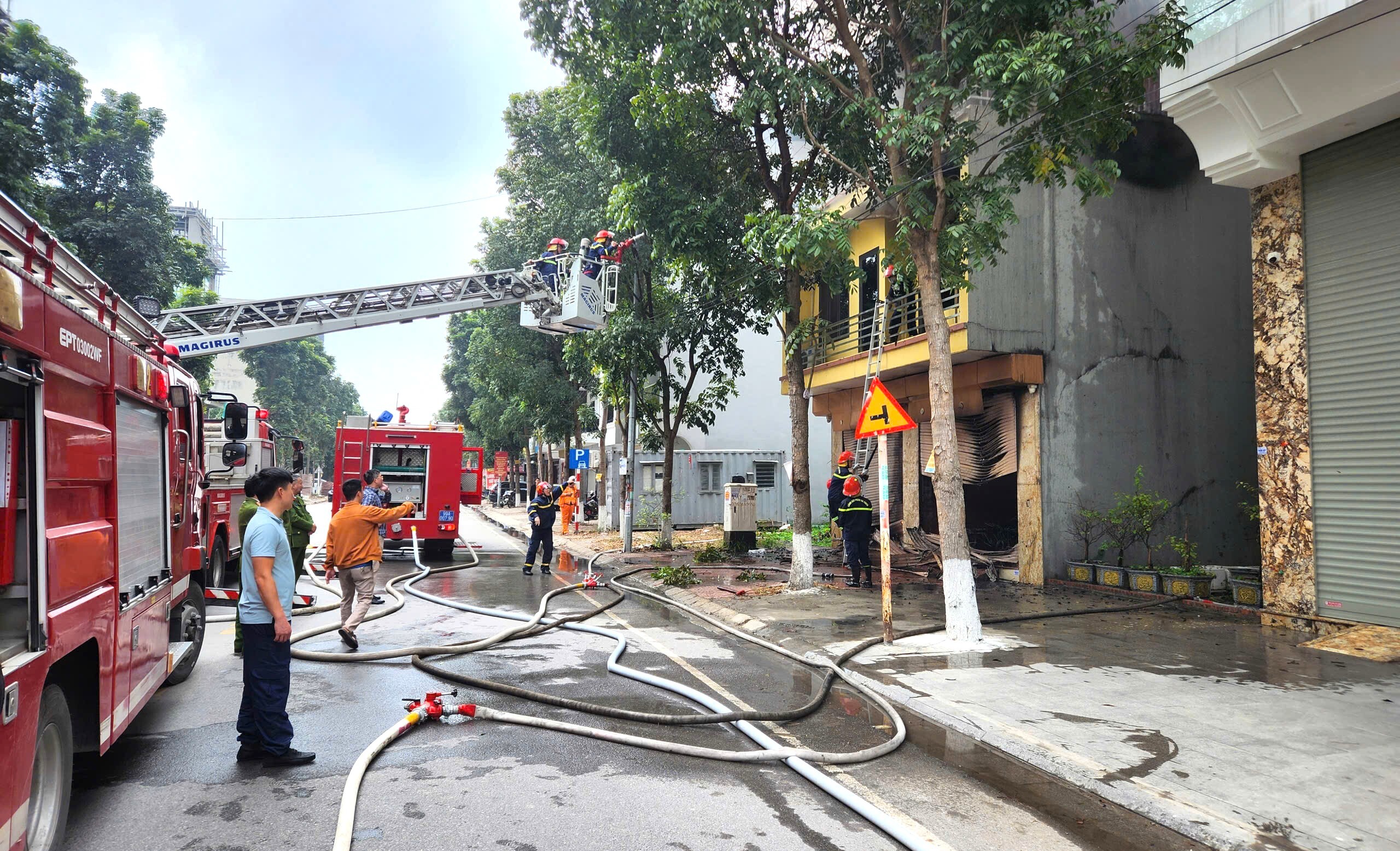 Nhận tin báo, lực lượng Cảnh sát Phòng cháy, chữa cháy và Cứu nạn, cứu hộ Công an tỉnh Bắc Ninh điều động 5 xe chữa cháy, trong đó có 1 xe thang, cùng khoảng 50 cán bộ, chiến sĩ đến hiện trường triển khai các phương án dập lửa, chống cháy lan sang khu vực lân cận.