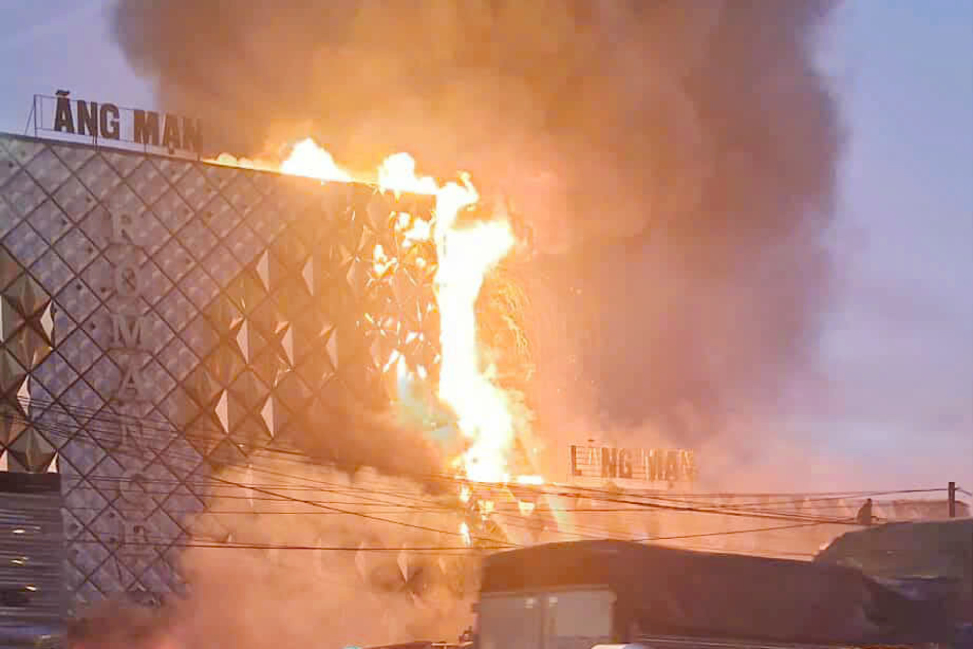 Do quán đã ngưng hoạt động từ lâu, bên trong chứa nhiều vật liệu dễ cháy như mút xốp, bàn ghế cũ, ngọn lửa nhanh chóng bùng phát dữ dội, bao trùm một góc bảng hiệu chỉ trong vài phút.