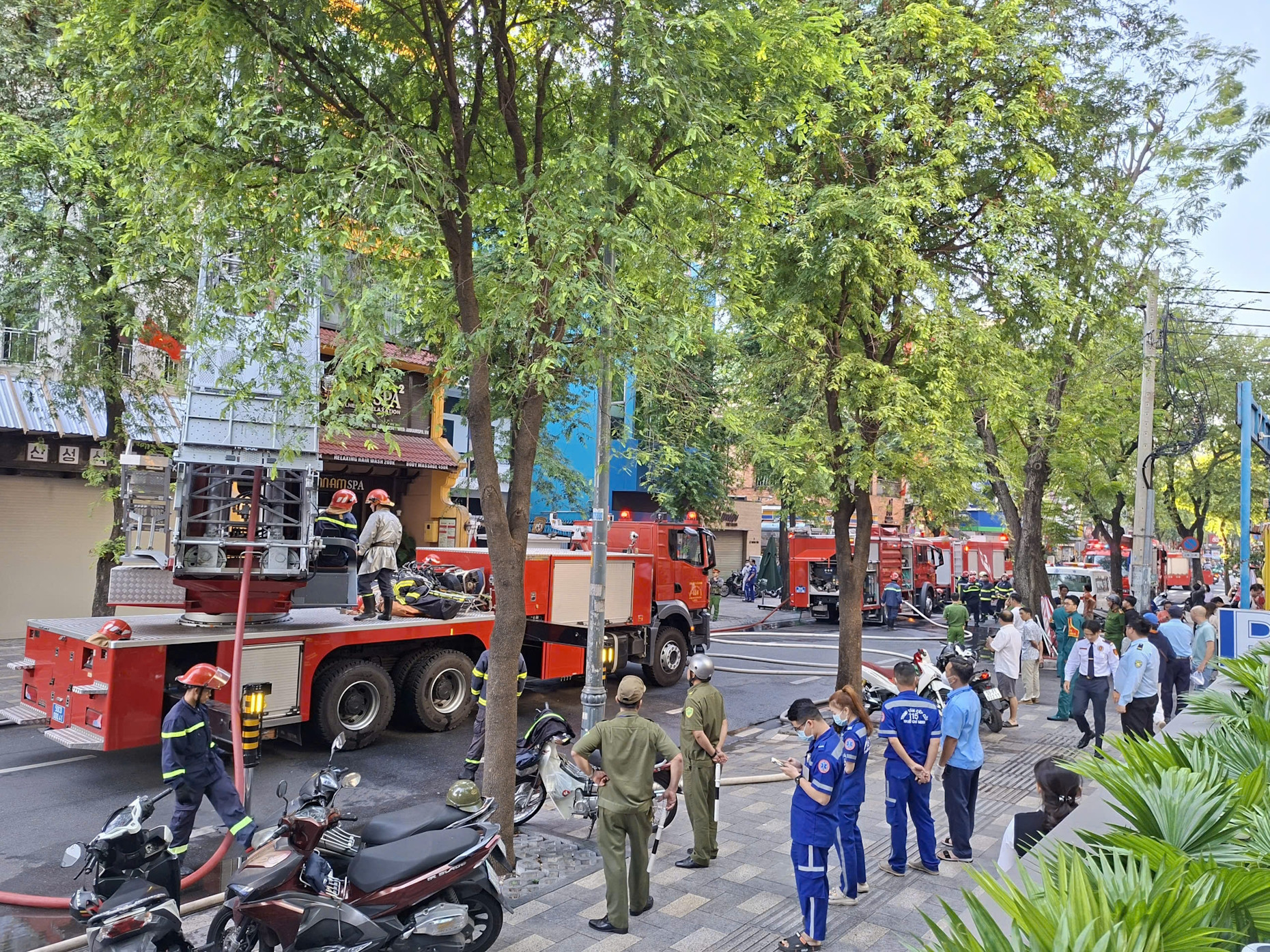 Ngay khi nhận được tin báo, Trung tâm chỉ huy Cảnh sát PCCC và CNCH (Công an TPHCM) lập tức điều động 7 xe chữa cháy chuyên dụng, bao gồm xe thang, cùng hàng chục cán bộ, chiến sĩ đến hiện trường.