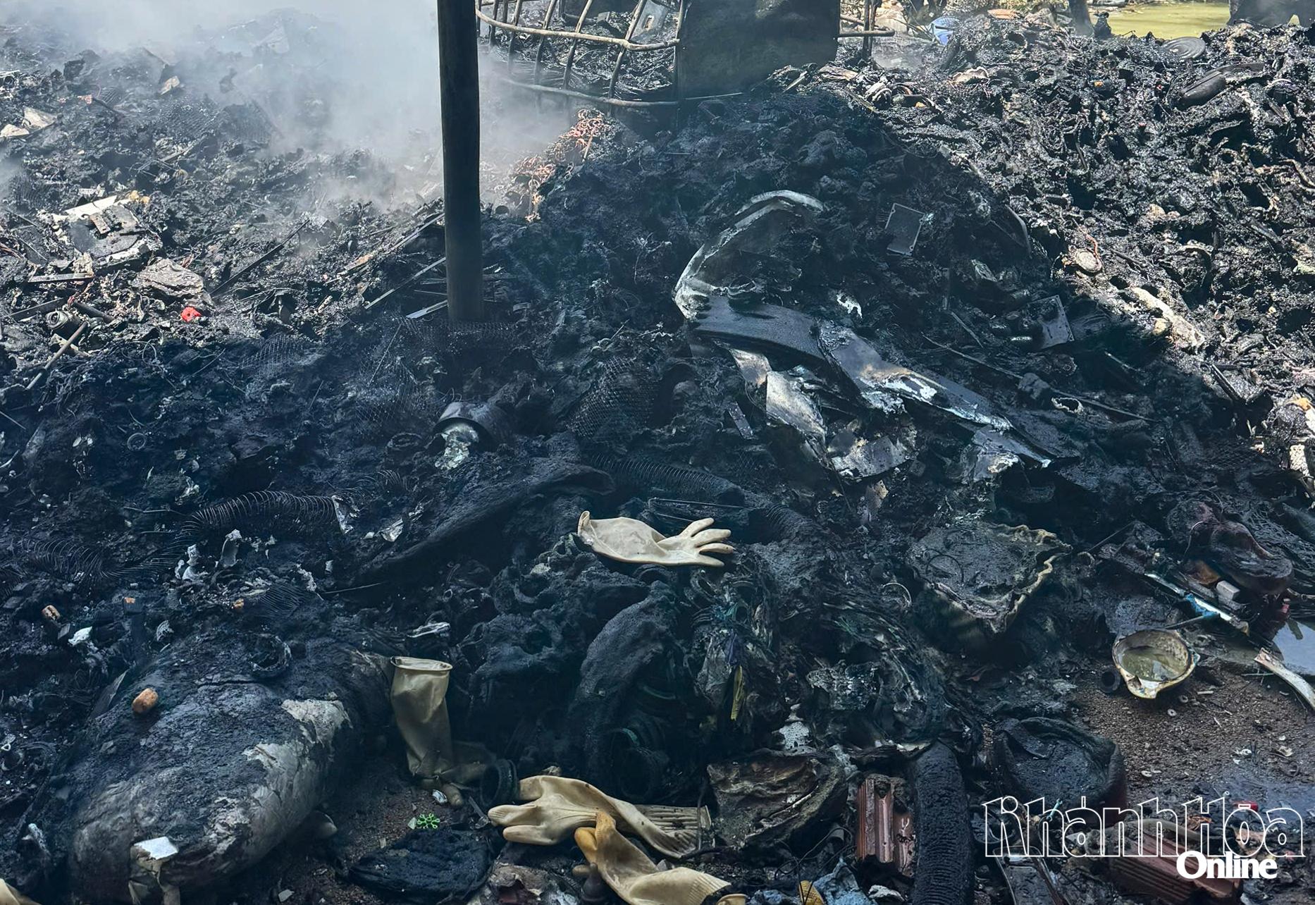 Hiện trường bãi rác và phế liệu xảy ra hỏa hoạn.