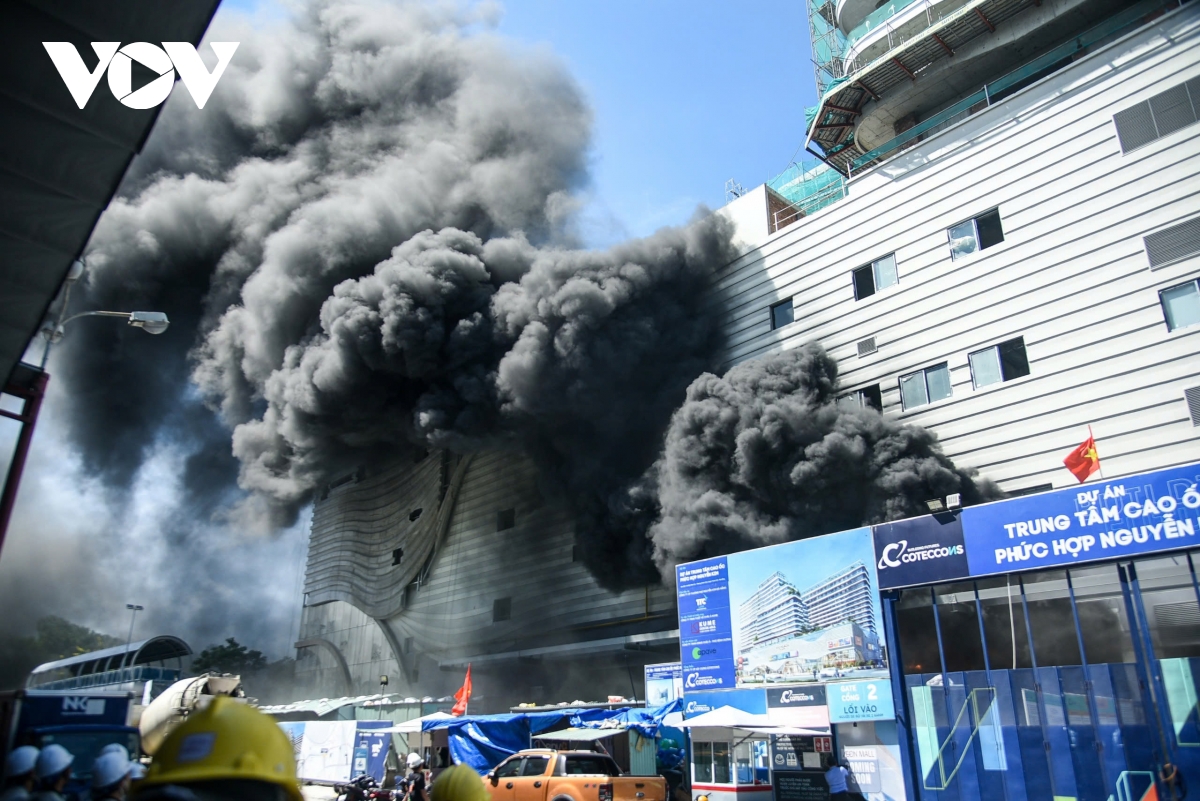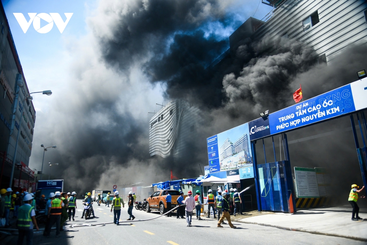 Ngọn lửa bùng phát từ tầng hầm sau đó lan lên tầng trệt của Dự án Trung tâm cao ốc phức hợp Nguyễn Kim.