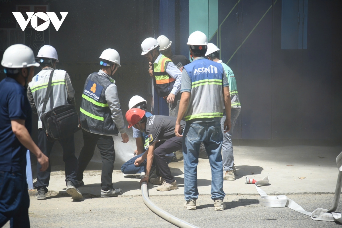 Công nhân tại hiện trường nỗ lực dập lửa.
