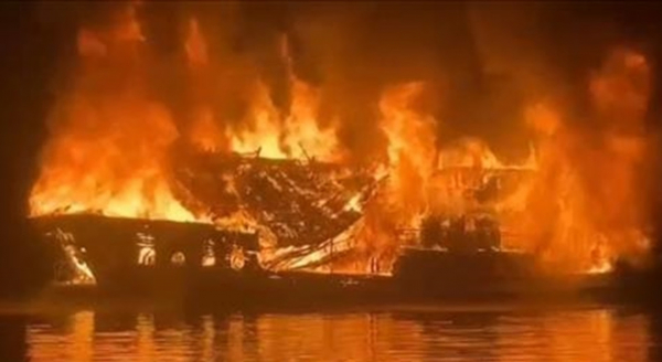 Đám cháy bùng phát dữ dội bao trùm toàn bộ táu du lịch Signature QN-7269,
