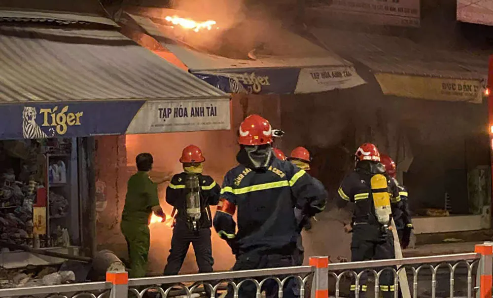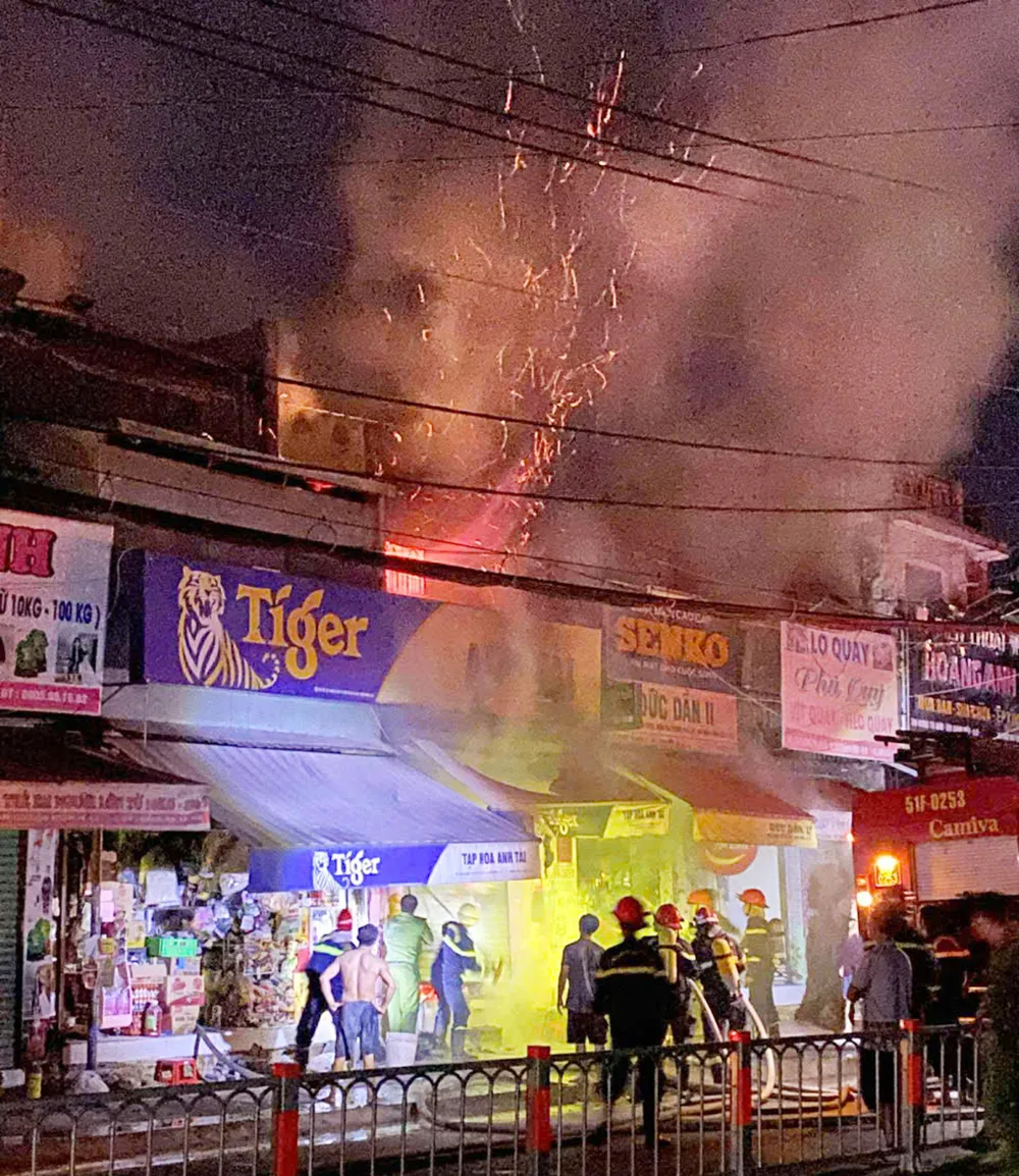 Khói lửa dữ dội bốc lên từ tiệm tạp hóa. Ảnh: NT