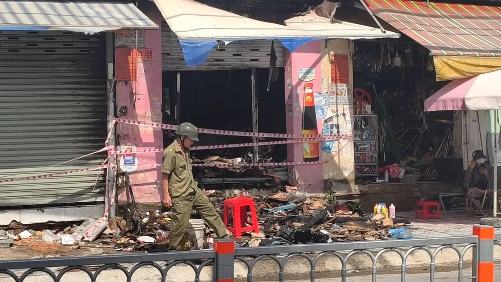 Đến gần trưa 17-10, Công an phường Trung Mỹ Tây (TP.HCM) vẫn đang phối hợp với các đơn vị nghiệp vụ phong tỏa, khám nghiệm hiện trường vụ cháy tiệm tạp hóa xảy ra rạng sáng cùng ngày.