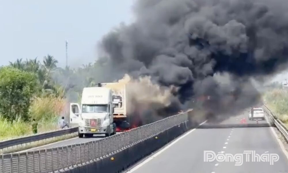 Theo thông tin ban đầu, khoảng 9 giờ 30 phút, tại vị trí Km58+400 trên tuyến cao tốc Trung Lương - Mỹ Thuận (hướng về Trung Lương), thuộc địa bàn tỉnh Đồng Tháp, xảy ra vụ cháy xe ô tô đầu kéo biển số 15LD-01834, kéo theo sơ mi rơ moóc mang biển số 15R-17461.
