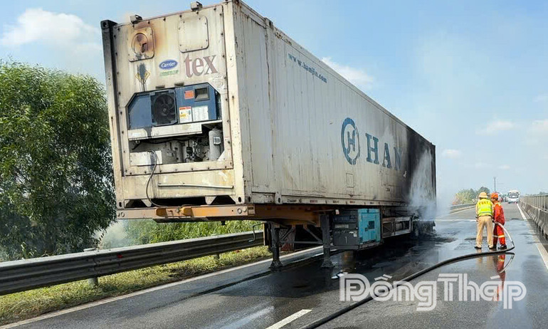 Ngay sau khi nhận được tin báo, Đội Cảnh sát giao thông đường bộ số 7 (Cục Cảnh sát giao thông - Bộ Công an) nhanh chóng có mặt tại hiện trường, triển khai điều tiết, phân luồng giao thông từ xa, đồng thời phối hợp với đơn vị quản lý đường cao tốc và Phòng Cảnh sát Phòng cháy, chữa cháy và Cứu nạn, cứu hộ - Công an tỉnh Đồng Tháp khống chế và dập tắt đám cháy kịp thời, hạn chế thiệt hại.