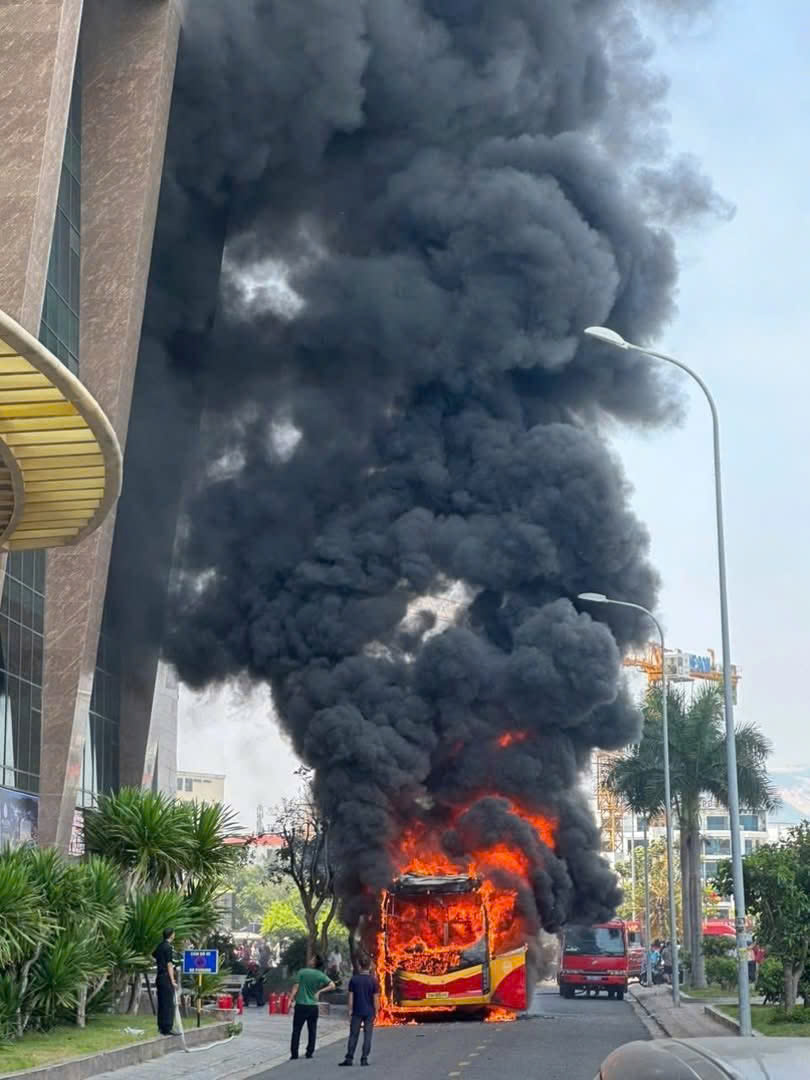 Trước đó, khoảng 10h48 cùng ngày, xe khách giường nằm biển số 50H-000.XX đang đậu tại khu vực bờ kè dưới chân cầu Trần Phú thì bốc cháy dữ dội, cột khói đen bốc lên nghi ngút. Bên cạnh là khách sạn Mường Thanh 40 tầng, nhiều người trên khách sạn hốt hoảng bỏ chạy xuống đường.