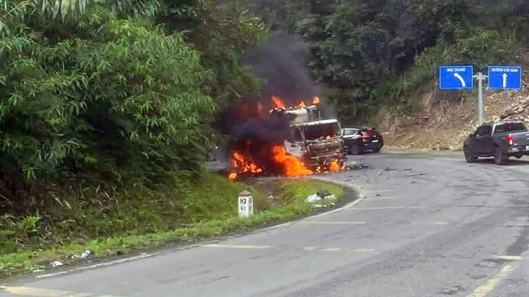 Theo đó, chiếc xe ô-tô tải đang lưu thông trên quốc lộ 27C đoạn đèo Khánh Lê (tỉnh Khánh Hòa) bất ngờ bốc cháy, phát hiện sự cố, tài xế vội tấp vào lề đường, mở cửa thoát ra ngoài trước khi ngọn lửa bao trùm.