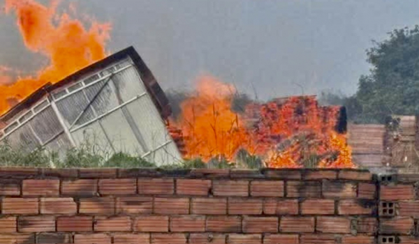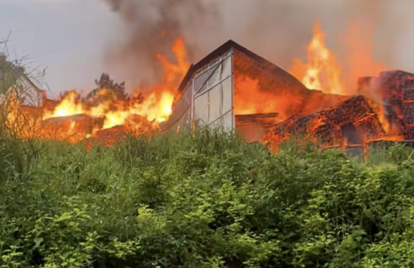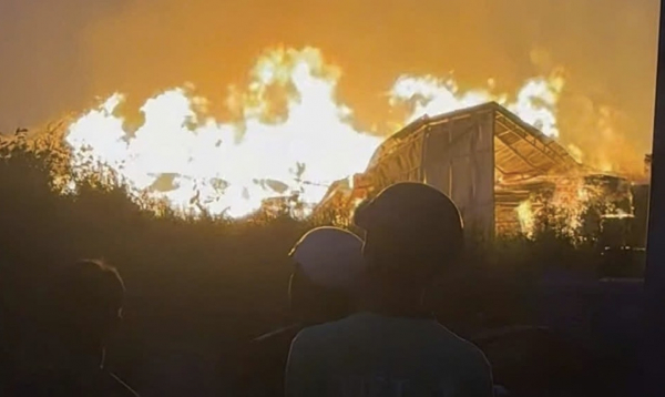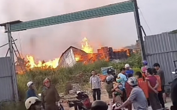 Ngọn lửa bao trùm toàn bộ khu xưởng.