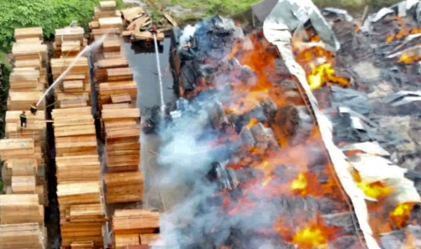 Trước đó vào rạng sáng cùng ngày, ngọn lửa bùng phát mạnh tại khu vực xưởng gỗ của công ty nơi chứa nhiều nguyên liệu, dăm bào, mùn cưa và sản phẩm thành phẩm, bán thành phẩm. Do nguyên liệu dễ cháy nên đám cháy lan rất nhanh và bao trùm toàn bộ khu xưởng và các vị trí chứa gỗ ngoài trời rộng hàng ngàn mét vuông.