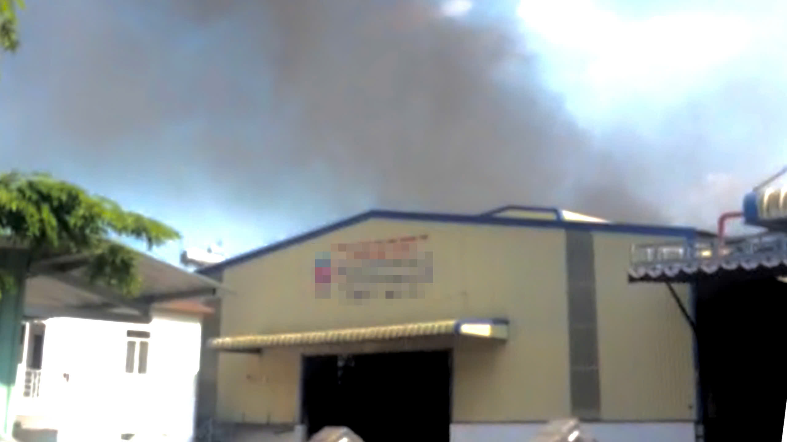 Cháy xưởng mùn cưa ở TP.HCM, 3 người bị thương. Ảnh cắt từ clip