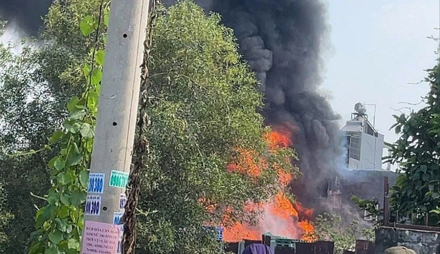 Nhận tin báo, Phòng Cảnh sát PCCC và CNCH Công an TP HCM đã điều động nhiều xe chữa cháy chuyên dụng cùng hàng chục cán bộ, chiến sĩ phối hợp Công an xã Đông Thạnh triển khai chữa cháy từ nhiều hướng, đồng thời phun nước làm mát khu vực xung quanh để ngăn cháy lan.