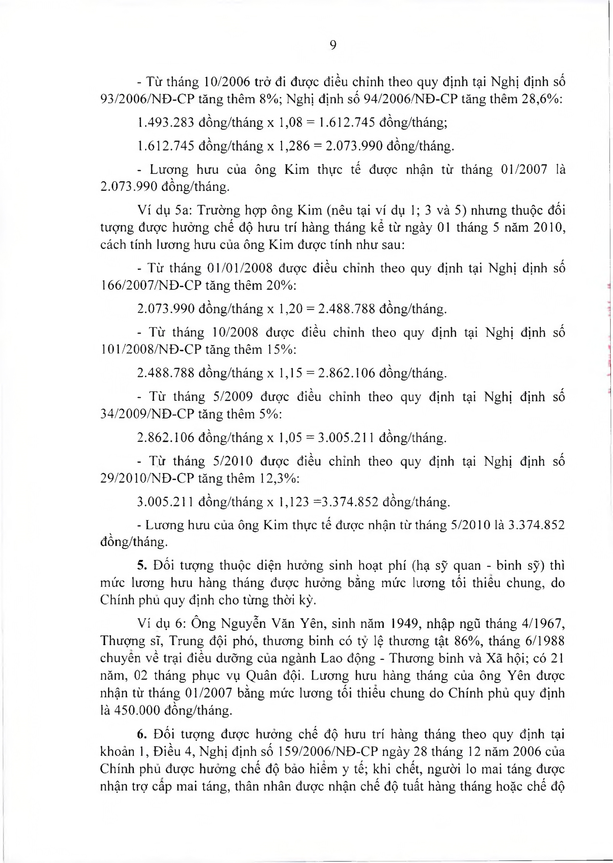 b) Đối với đối tượng quy định tại điếm c, d khoản 1 Mục 1 Thông tư này được áp dụng điều chỉnh như các đối tượng tại Điểm a khoản này và được điều chỉnh theo quy định tại Nghị định số 166/2007/NĐ-CP ngày 16 tháng 11 năm 2007 về việc quy định mức lương tối thiểu chung; Nghị định số 101/2008/NĐCP ngày 12 tháng 9 năm 2008 về việc điều chỉnh lương hưu, trợ cấp bảo hiểm xã hội và trợ cấp hàng tháng đối với cán bộ xã đã nghỉ việc;