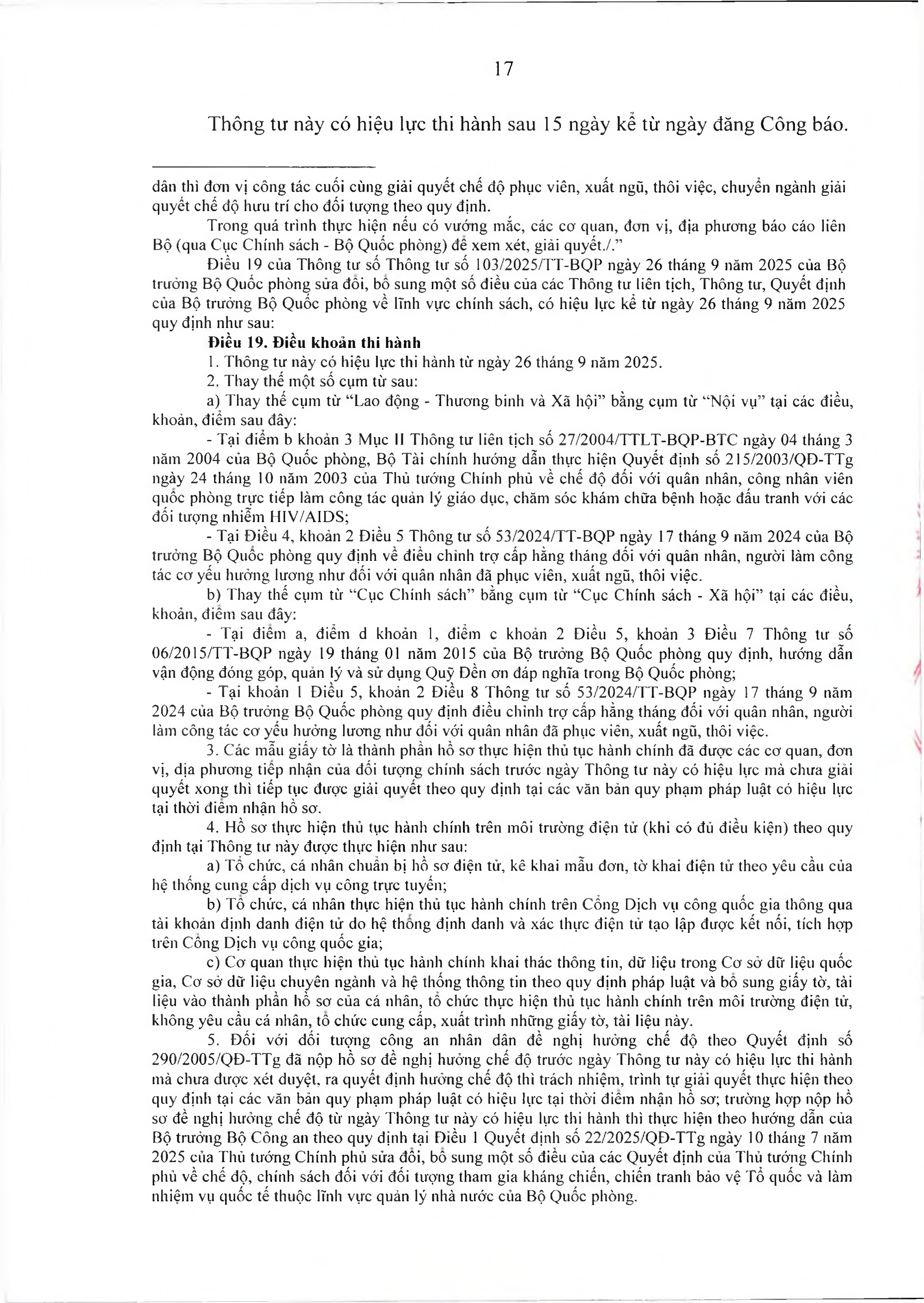 Thông tư này có hiệu lực thi hành sau 15 ngày kể từ ngày đăng Công báo.