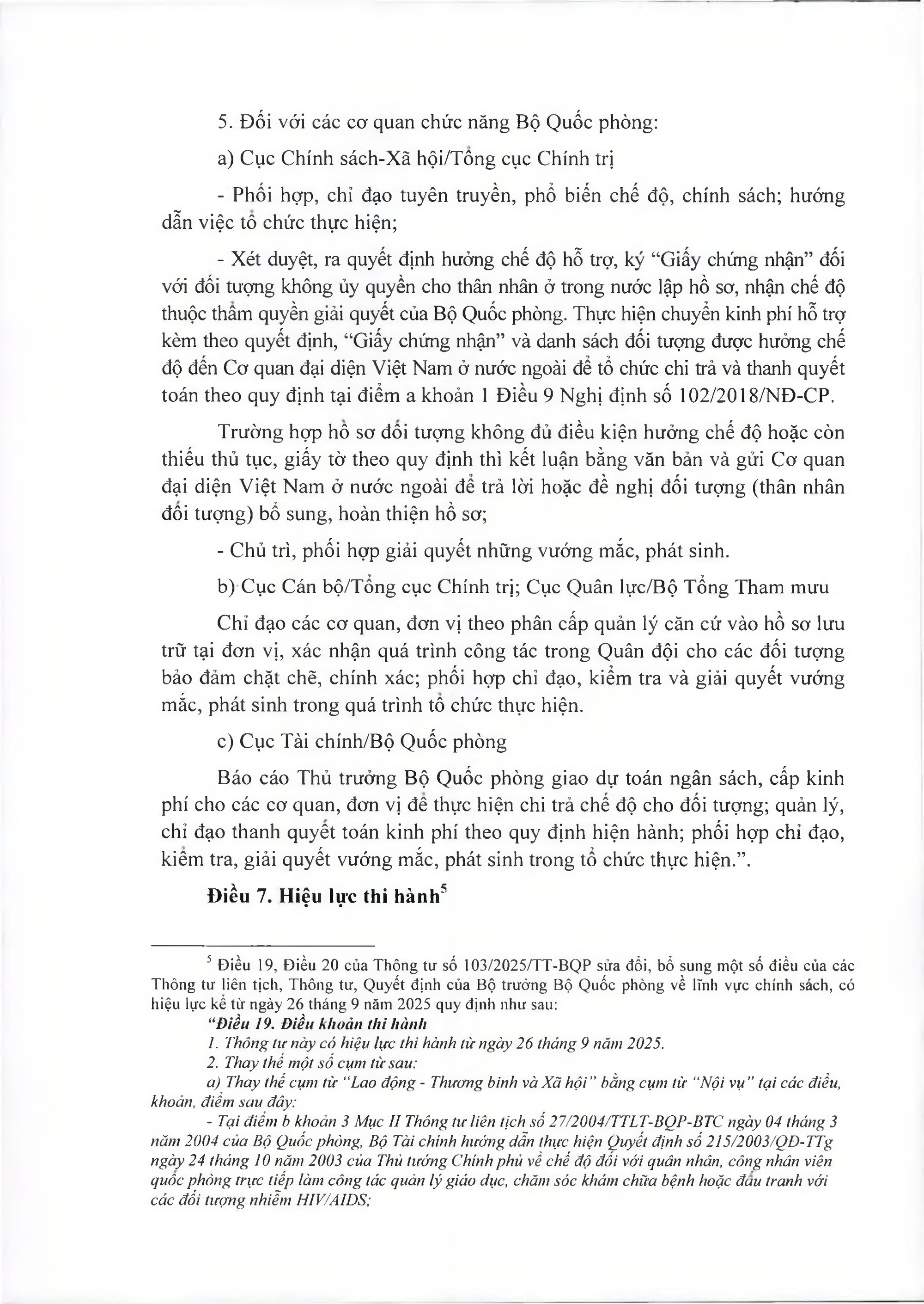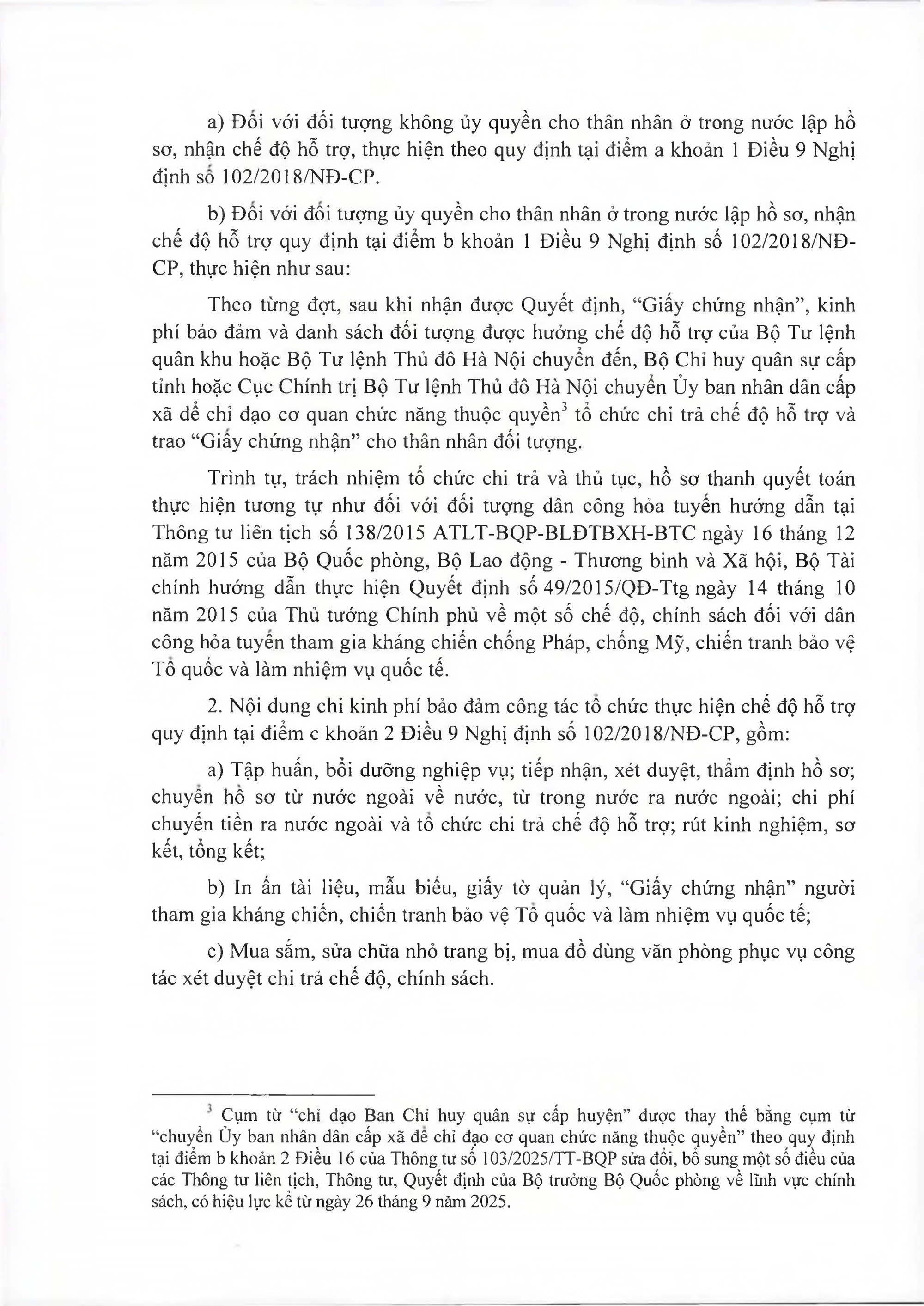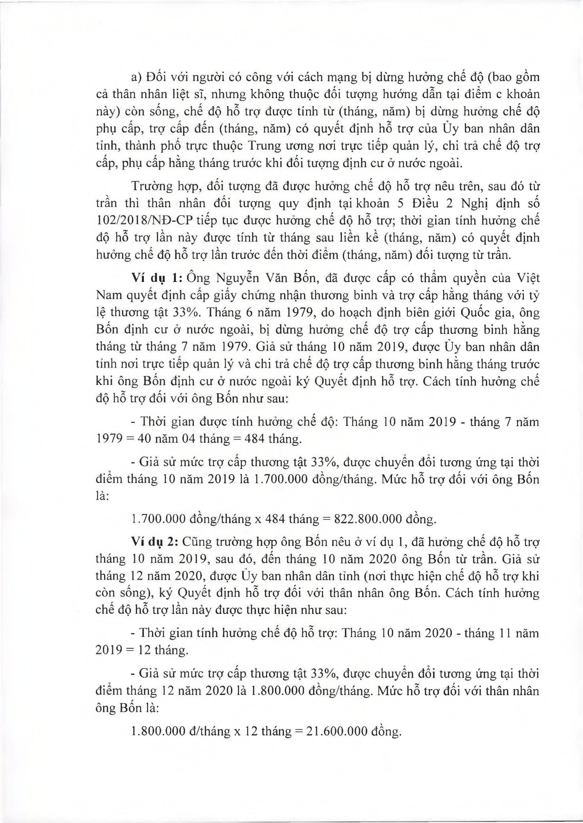 TOÀN VĂN: Văn bản hợp nhất số 29/VBHN-BQP Thông tư hướng dẫn một số điều của Nghị định số 102/2018/NĐ-CP ngày 20/7/2018 của Chính phủ quy định chế độ hỗ trợ và một số chế độ đãi ngộ khác đối với người Việt Nam có công với cách mạng, người tham gia kháng chiến, chiến tranh bảo vệ Tổ quốc và làm nhiệm vụ quốc tế đang định cư ở nước ngoài./.