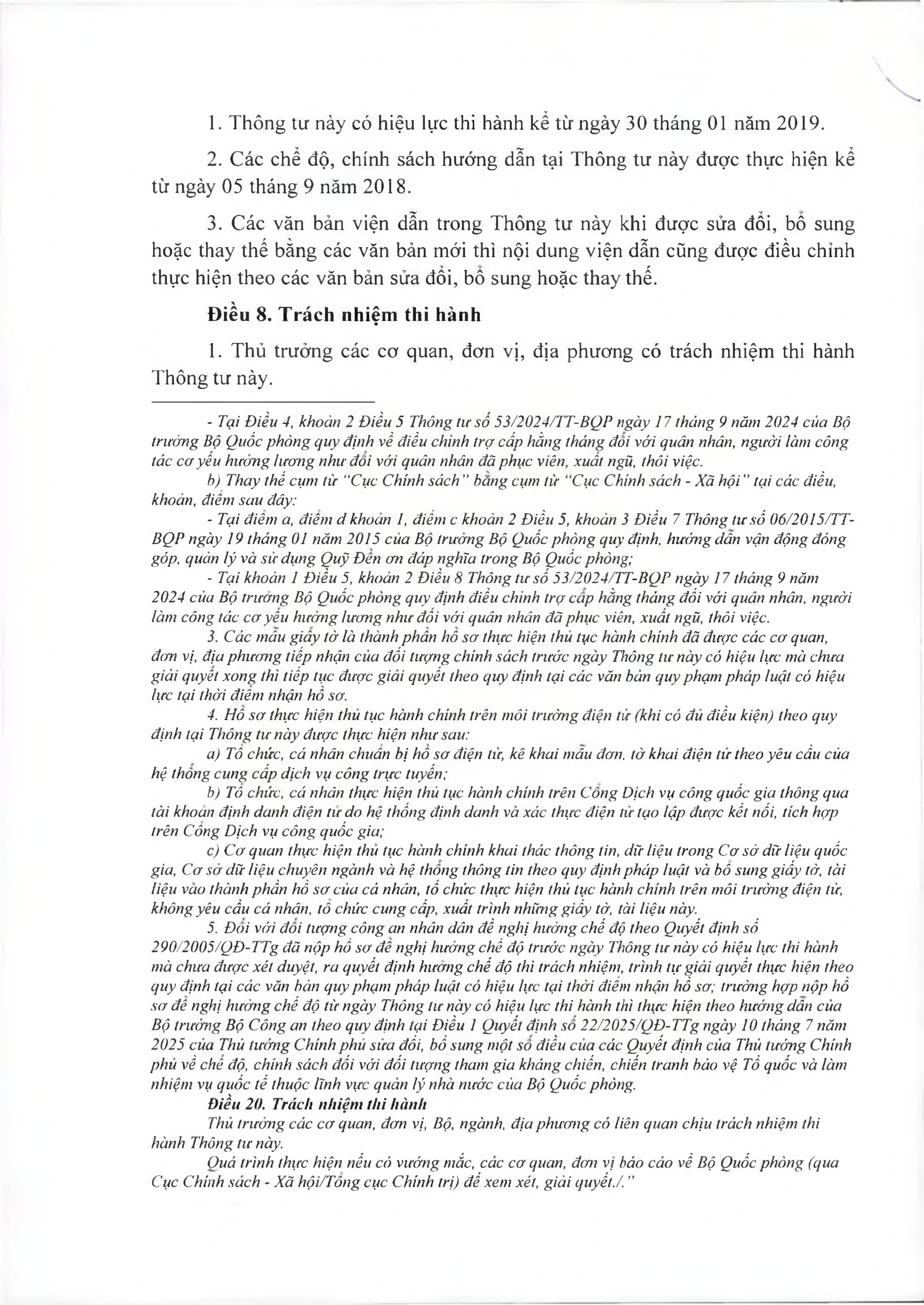 2. Các chế độ, chính sách hướng dẫn tại Thông tư này được thực hiện kể từ ngày 05/9/2018.
